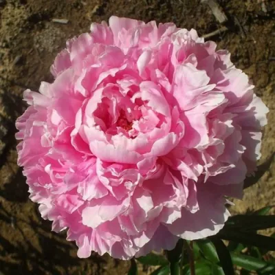 Цветение этого пиона происходит в июне. Цветы махровой классификации достигают крупных размеров — 20-25 см в диаметре, и радуют глаз своим нежно-розовым оттенком. Взглянув на такую красоту, невозможно не влюбиться в это растение. Аромат слабый.