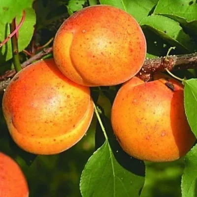 - Округлой, со средне глубоким швом, формы, одного размера, жёлтого, с тёмно-красным покровом, цвета, покрыты лёгким опушением, хорошо отделяются от ветвей. Мякоть плотная и сочная, светло-жёлтого цвета. Косточка удлинённо-овальной, с острым верхом, формы, средне сросшаяся;