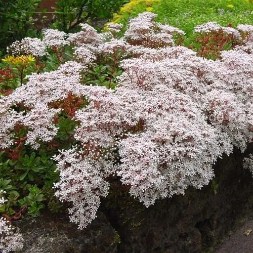 Очиток Мурале белый — сорт почвопокровного очитка, созданный природой для минималистичных, засушливых, солнечных пространств. Он выстраивает плотный, аккуратный ковёр из миниатюрных цилиндрических листьев, устойчивый к палящему солнцу, резким заморозкам и полному отсутствию ухода. Визуально компактный, но структурно выразительный, Мурале подходит для оформления рокариев, альпийских горок, контейнеров и гравийных садов.