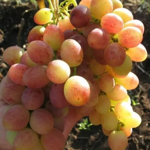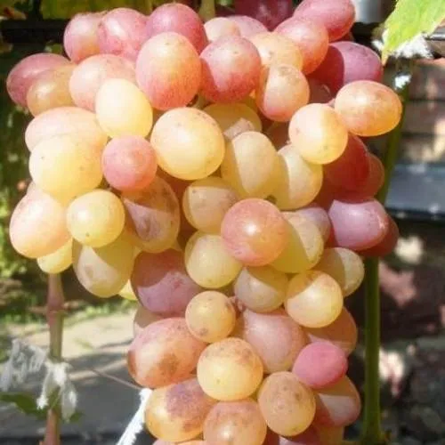 Ягоды Тасона – бело-розовые, овальные, весят около 6-7 граммов (24,7 x 18,2 мм). Мякоть их хрустящая, гармоничного вкуса с отчетливыми нотками муската. Сахаристость составляет 19-21 г/100 см³, в то время как кислотность балансирует на уровне 5-6 г/дм³, что делает этот сорт особенно притягательным для ценителей вкуса.